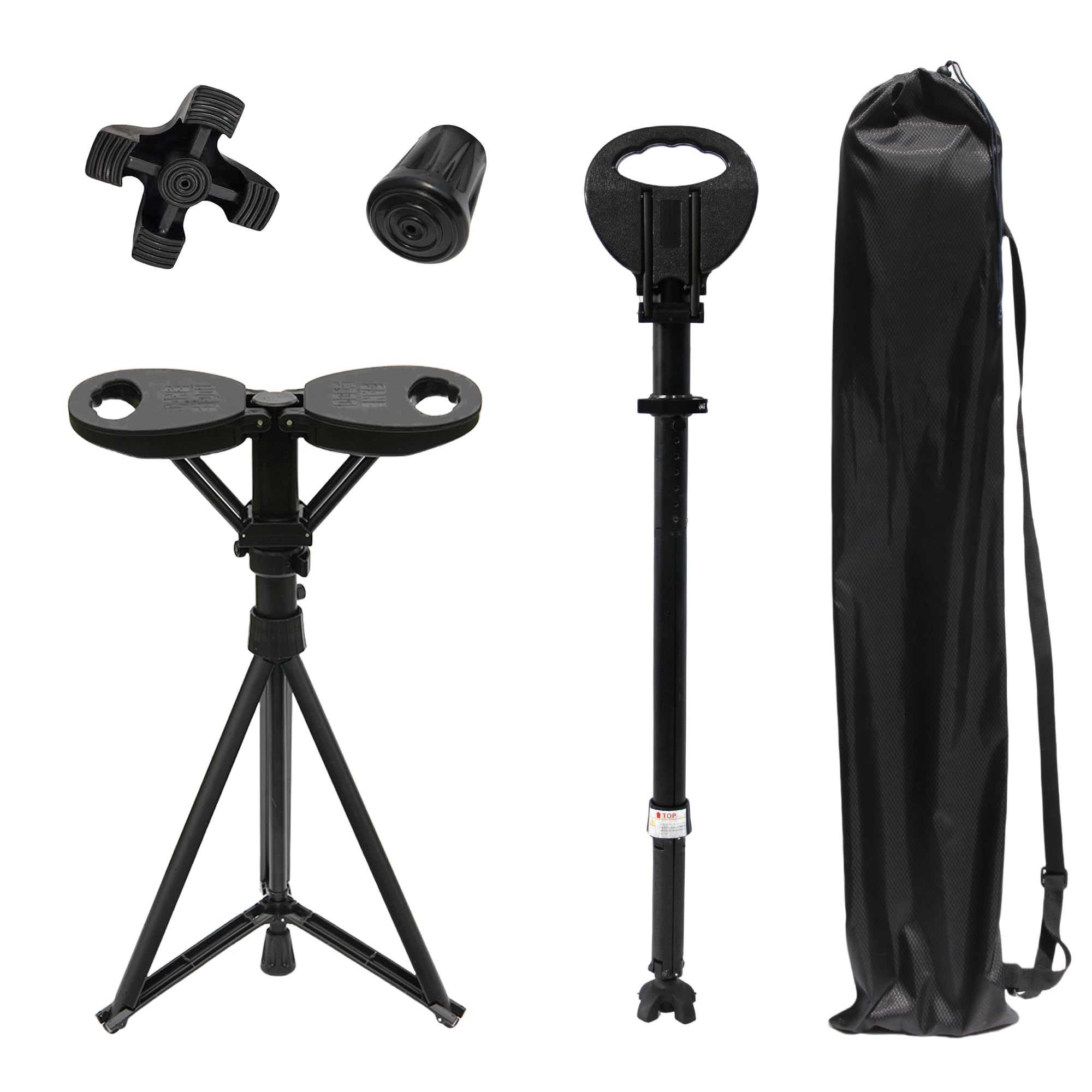 - Heavy-Duty Support: Made of reinforced aluminum alloy, this cane chair weighs approximately 2 pounds, and has been tested to support a maximum weight of 330 pounds (150kg). The 9.9" x 4.8" seat platform comes with a removable premium padded cushion – perfect for trail breaks or city explorations.