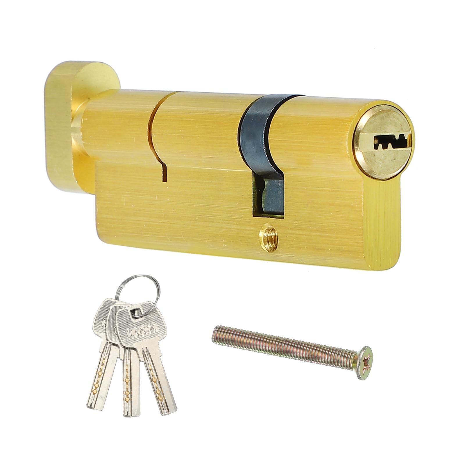 The lock cylinder with knob is perfect for door locks, widely used in homes, offices, warehouses, garages, balconies, etc. This lock cylinder delivers the peace of mind you expect from a quality security component.SpecificationColor: BrassMaterial: BrassLength: 90 mm / 3.54 inch (25/10/55)Size: 16 x 32 x 9.5 mm / 0.63 x 1.26 x 0.37 inch(Dia*H*T)Packing List: 1 x Lock Cylinder, 1 x Mounting Screw, 3 x KeysAdvantageMade of stainless steel and brass material, which is sturdy and durable, wear-resistant, corrosion-resistant, and not easy to rust and deform.Can be unlocked from a single side of the door with keys.InstructionEasy to use, simply remove the old or broken lock cylinder and replace it with a new one, no tools are required.NOTE: Please check the right size before ordering.