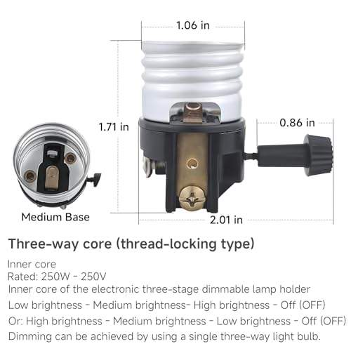 - Create the Perfect Ambiance: The 3 - way turn switch knob on our socket is like a magic wand for your lighting. With low - medium - high settings, you can transform the mood of any room in an instant. Dim the lights for a romantic dinner, brighten them up for a lively gathering, or find the perfect balance for a cozy night in