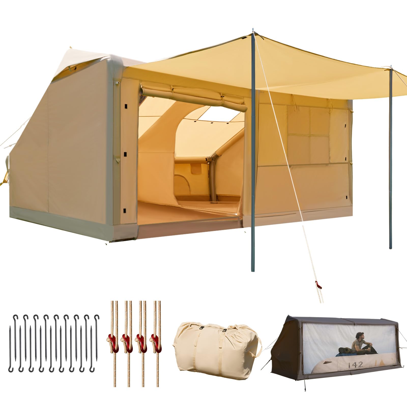 - 【Comfortable Sleep】With a 6-inch thick inflatable mattress and extra small windows on both sides, our inflatable tent for camping can provide you with a comfortable, fresh, and supportive sleeping environment