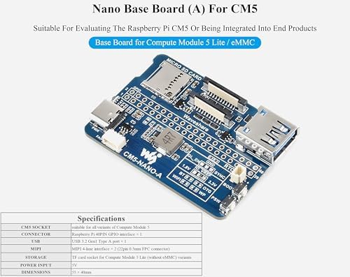 - Nano Base Board (A) for Compute Module 5 Lite / eMMC Same Size As The CM5. Suitable For Evaluating The Raspberry Pi CM5 Or Being Integrated Into End Products
