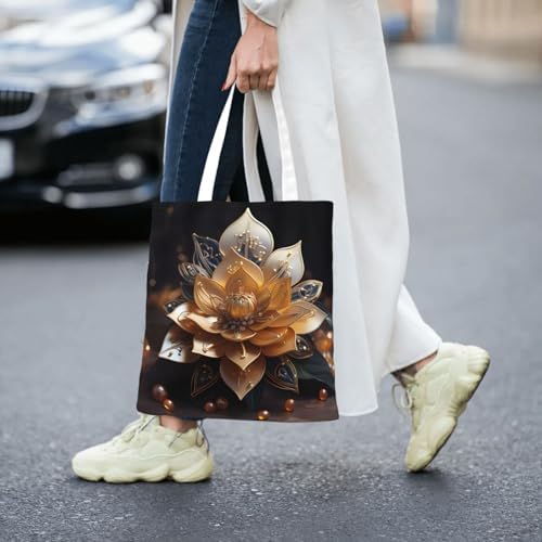 White Delicate Lotus Flower Environmentally Friendly And Fashionable Canvas Shopping Bag With Large Capacity Totes Light Durable And Practical Suitable For Shopping Travel And Traveling