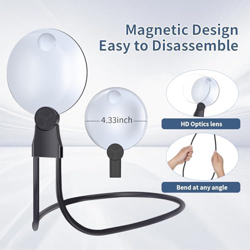 - 【Multi-Purpose】The flexible gooseneck design allows you to keep your hands free. It can be hung around your neck and adjusted to different directions and heights, or placed on a table for convenience. Even with prolonged use, it remains comfortable and prevents fatigue. It's perfect for activities like reading, cross-stitching, repairs, and more