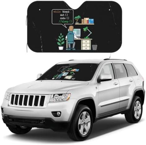 Eat Code Sleep Funny Coder Coding Programmer Car Windshield Sunshade,Front Window Sun Visor Protector Foldable Shield Cover for Auto Sedan,Truck SUV,Small