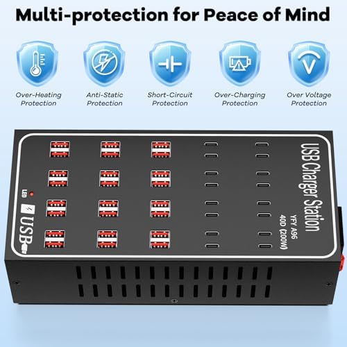 Charging Station for Multiple Devices, Vantacent89 Multiple Charger Station with Multiple Fast Charging 40 Ports