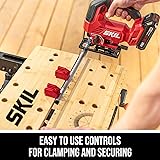 EASY TO USE CONTROLS - For clamping and securing large and small items into place QUICK-CONNECT SYSTEM - For fast, easy setup without tools QUICK-INSTALL DUST BAG - Helps keep your workspace clean FOLD FLAT DESIGN - For easy storage FOLDING STAND COMPATIBILITY - Compatible with SKIL Table Saws (TS6308, TS6328) and 5-1/2 In. Flooring Saw (FS3602), sold separately WORKBENCH COMPATIBILITY - Compatible with Portable Miter Saw Stand (SRS0001) and the Rolling Tool Box 3 Pc. Tower Set (TSM0002-3), sold separately STEEL LOCKER PLATE - For increased weight capacity