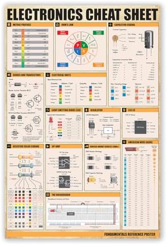 Electronics Cheat Sheet Poster, 16"x24", Electrical Knowledge, Conversion Chart Print, Coding Poster, Engineering Classroom - Frame not Included