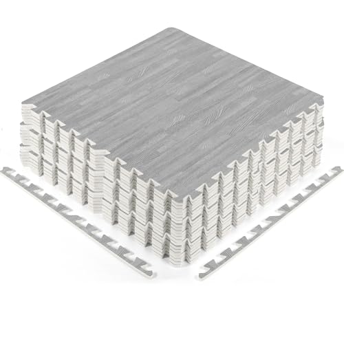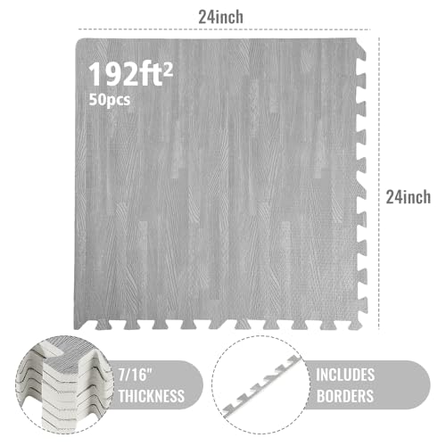 - Wood Grain Foam Tiles Bulk: you will get 50 pieces of interlocking tiles with borders; The EVA foam tiles create an appearance of vintage wood grain flooring, and blend well with natural hardwood; Each measures about 24 x 24 x 3/8 inches
