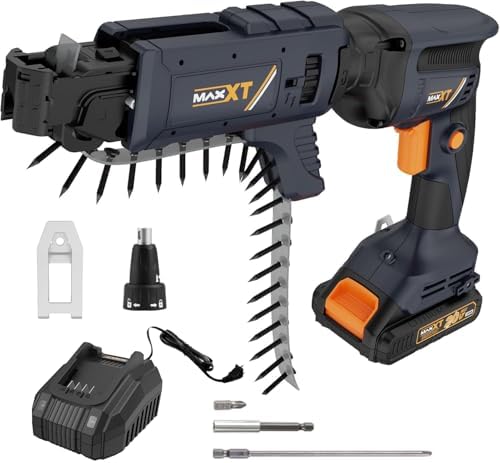 20V Drywall Screw Gun Brushless, MAXXT Cordless Lithium-Ion Brushless Self Feeding Drywall Screwdriver Autofeed 5000RPM with Collated Drywall Attachment(Included 2.0Ah Battery and Charger)