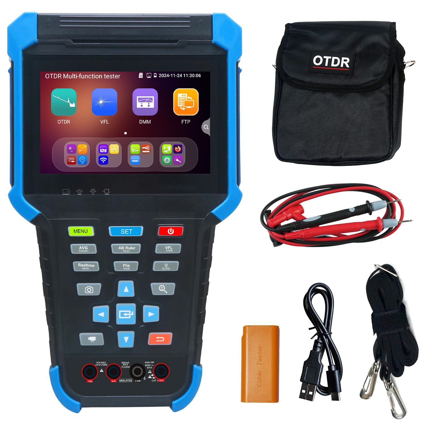 - [ Basic Fiber Tester ] 4 inches touch screen; SC/UPC connector, packing included 1x romte kit,1x Charger 1x Type-C power cable; Built-in 3.7V/4000mAh battery, Single Gigabit Ethernet port, 10/100/1000Mbps adaptive; power input:DC5V/2A