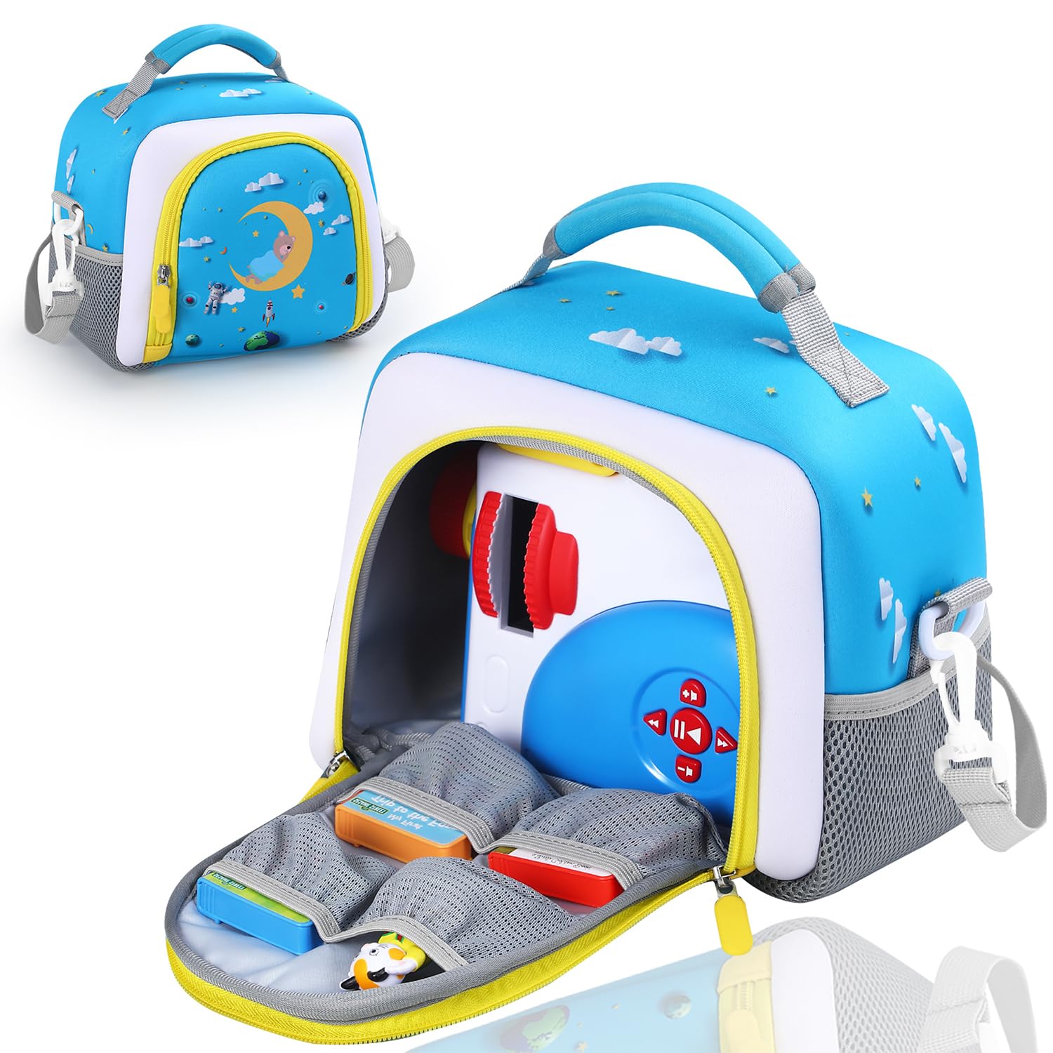 Travel Carrying Case Compatible with Yoto Player Bluetooth Speaker,30 Cards Storage Bag with Handle and Shoulder Strap,Portable Travel Storage box for Player & Headphone Accessories (Blue)
