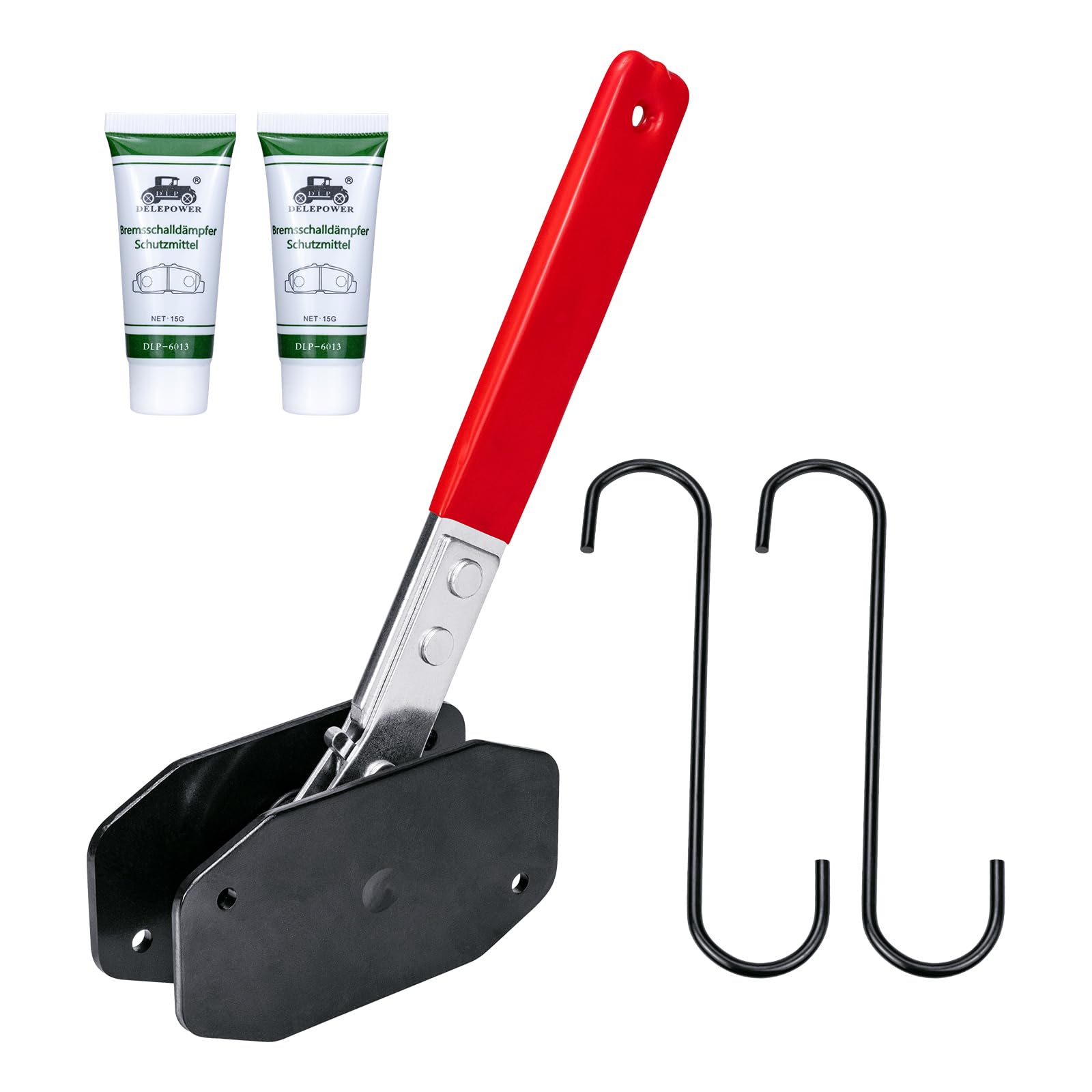 - 【Two extra hooks and two extra bottles of lubricating oil】 The hooks are used to hang your brake discs, preventing them from shaking when you repair the car alone. The two bottles of lubricating oil have the functions of preventing rust and abnormal noises. They should be applied to the back of the brake shoes. Please do not apply them to the contact surface of the brake pistons, as this may easily cause slipping