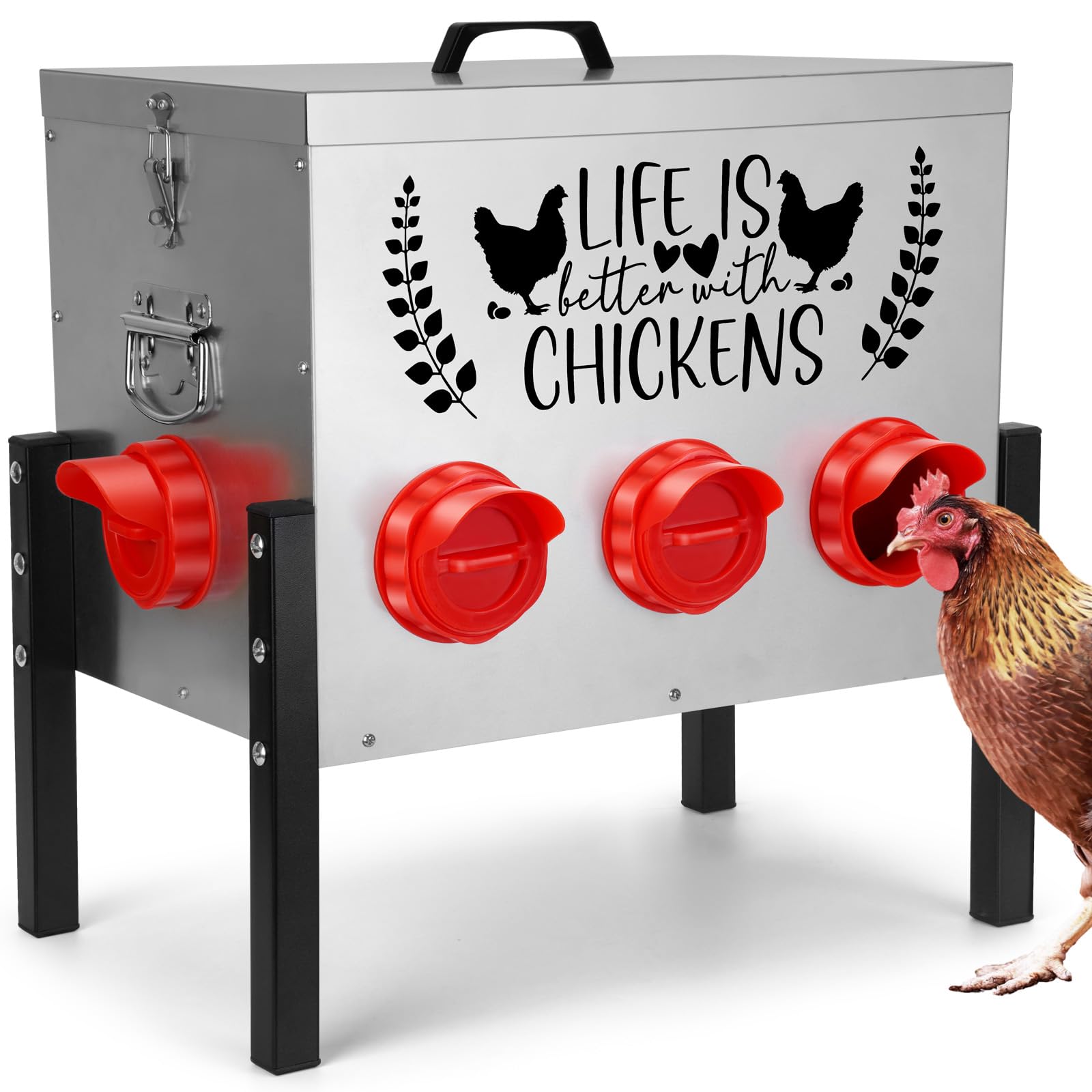 - Convenient Filling and Easy Cleaning: The chick feeder is easy to open and close for convenient filling and cleaning; the chicken water bottle simply turn upside down, fills with water, twists securely and lock on the base.