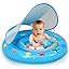 Baby Pool Float with UPF50+ Sun Protection Canopy, Inflatable Swim Floatie with Animal Toy Play Console and Hand Air Pump, No Flip Over Swimming Floaty for Infants & Toddlers 6-36 Months