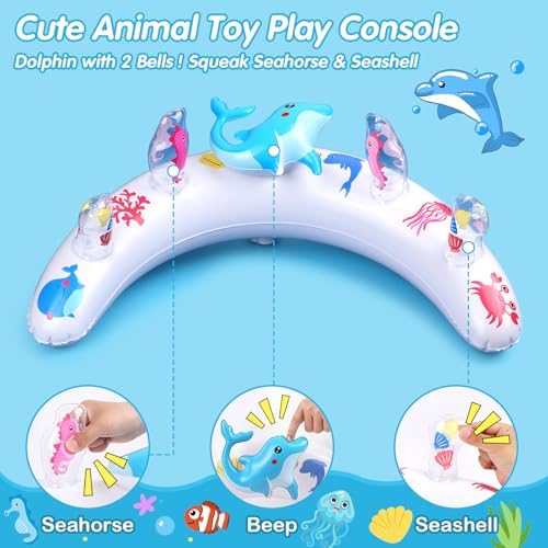 - Quick Inflation & Installation: This infant swimming float comes with a small hand pump and three valves for convenient inflation, allowing more time for fun in the pool. The dolphin toy play console is easy to set up to entertain the baby, and you can also remove it so the baby can splash in the water