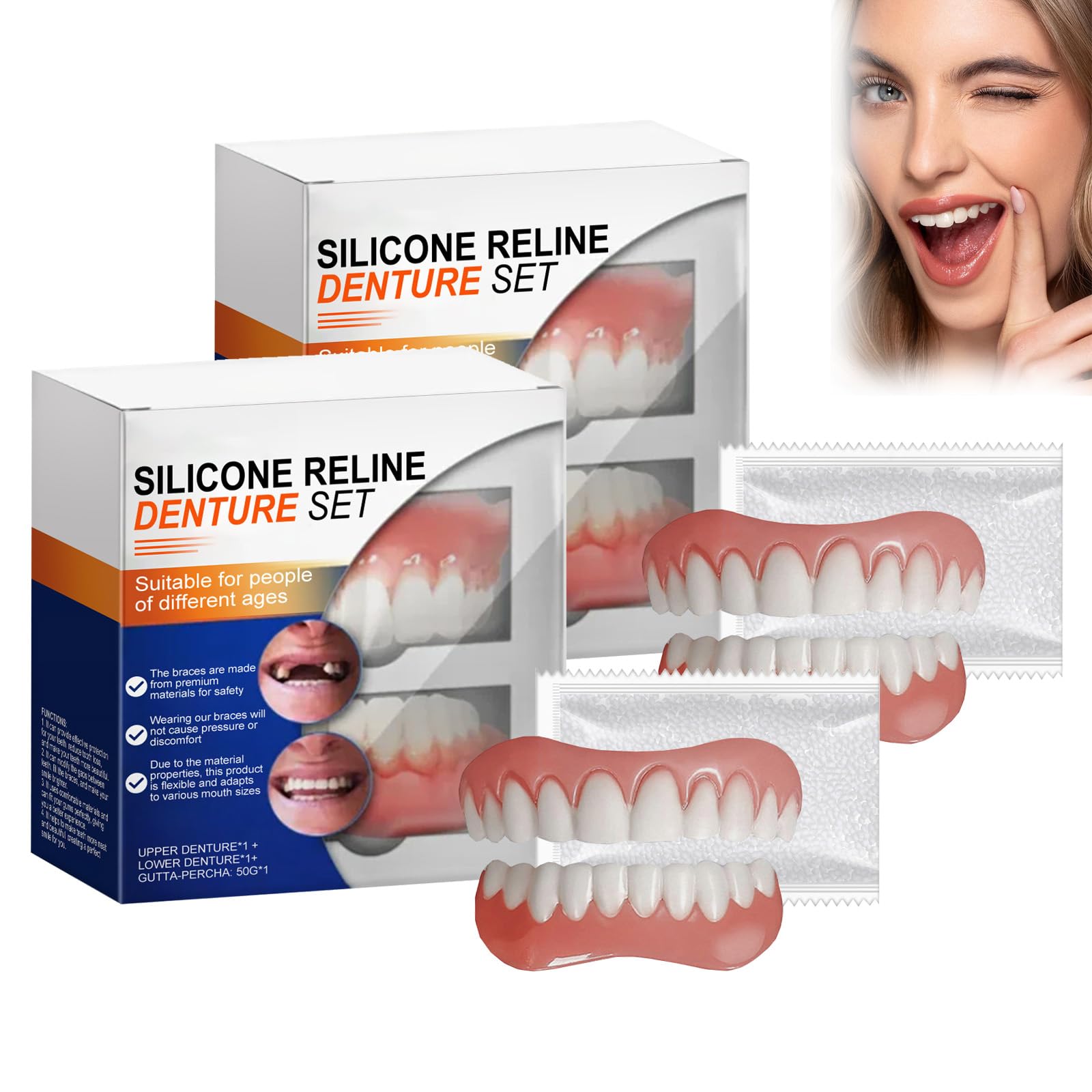 Advanced Customized Full Denture Set, Silicone Reline Denture Set, Soft and Comfortable, Denture Silicone Reline Kit for Men & Women (2Pcs)