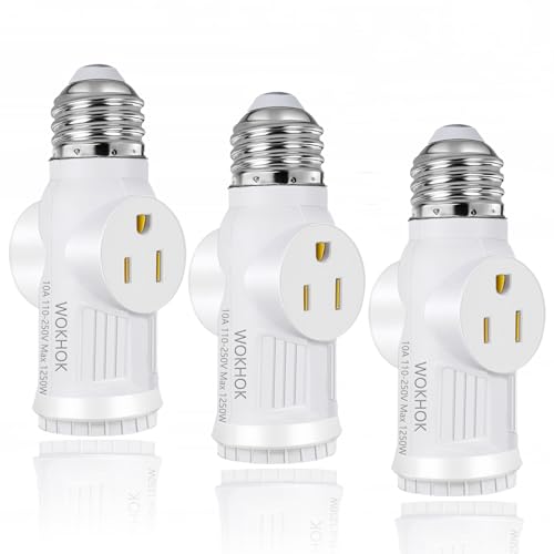 Light Socket Outlet Adapter, Convert E26 Light Socket to 2/3-Prong Outlet Adapter and Light Bulb Socket