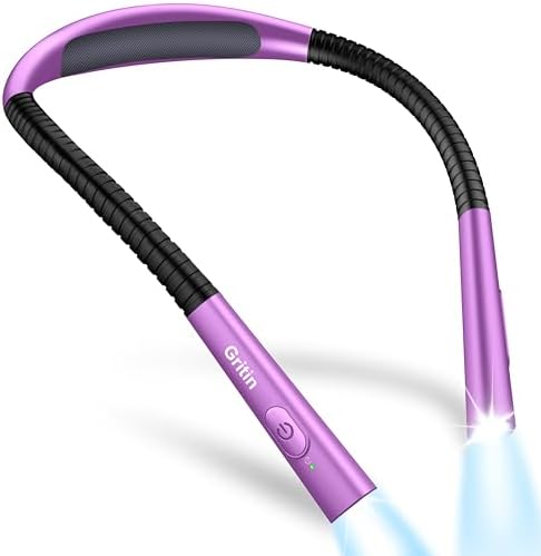 Gritin Book Light, Rechargeable Neck Light for Reading - 4-Color&5-Brightness,Bendable Arms,30-min Timer,80+ Hrs Runtime,Neck Curve Fit Ergonomic Design, Comfortable for Repairing etc-Dark Purple