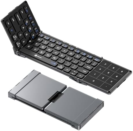 iClever Foldable Bluetooth Keyboard, BK18 Portable Keyboard with Touchpad and Number Pad, USB-C Rechargrable, Pocket-Sized Folding Wireless Travel Keypad for iPad, iPhone, Smartphone, Tablet, Laptop