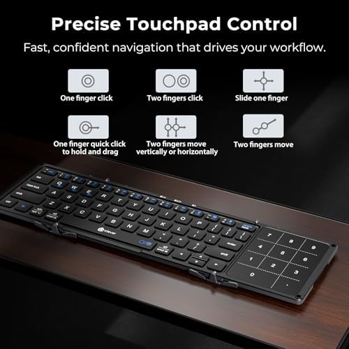 - Portable & Lightweight for Travel and Work: Weighing only 7.47 oz, this tri-fold Bluetooth keyboard folds down to a compact, pocket-size design that slips easily into your backpack or laptop sleeve. Ideal for travel, business trips, commutes, and remote work.