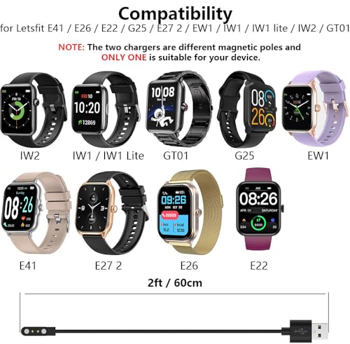 Chargers for Letsfit E41 / E26 / E27 2 / E22 / G25 / EW1 / IW1 / IW1 lite / IW2 / GT01 Smart Watch Cord, 2-Pack [Model A + Model B, Only One Fit] Magnetic USB Charging Cable