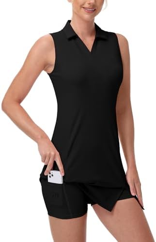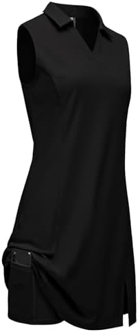 BGOWATU Women's Tennis Dress Sleeveless Collared V Neck Golf Polo Dress Side Slit Sports Dress with Shorts and Pocket
