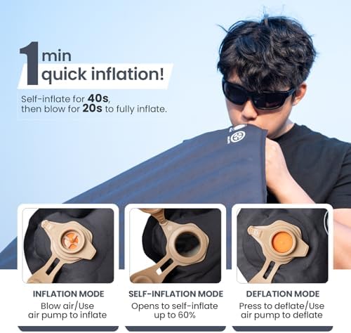 - SELF-INFLATING: Inflates and deflates fast with a built-in nozzle design that also enables mattress firmness adjustment; unfold the product to self-inflate to 60% and use the nozzle to fully inflate to 100% within seconds