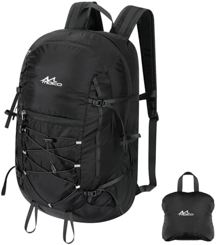 MoKo Hiking Backpack, 40L Large Capacity Camping Backpack with Multiple Pockets, Tear-Resistant Travel Daypack for Men Women, Packable and Lightweight Hiking Daypack for Travel Camping Outdoor, Black