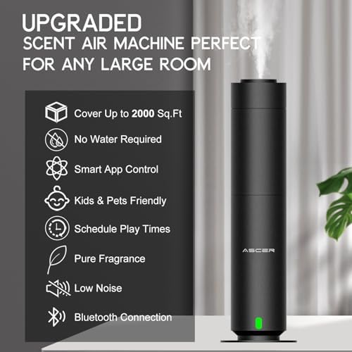 - 【Premium Scent Diffuser for Home & Office】- Meet ASCENTYER's new premium scent machine, designed to deliver a pleasant fragrance in any indoor setting. Perfect for both your home and workspace, it easily fills the room with a soothing aroma. Set it up in your living area or on your office desk, and it’ll quickly help you relax and lift your mood.