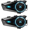 D10 Motorcycle Bluetooth Headset with AI Voice Control, 4 Riders Helmet Headphone Communication System with Noise Reduction/FM Radio/Universal Pairing/ IPX7, 2 Pack