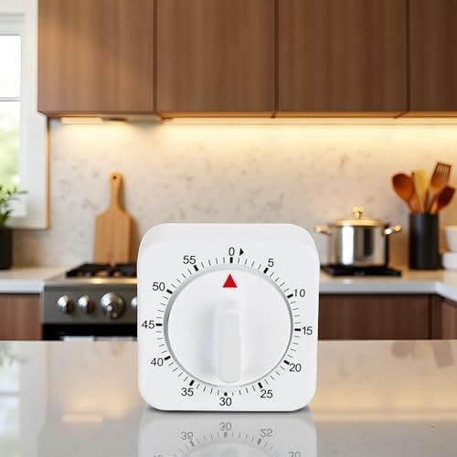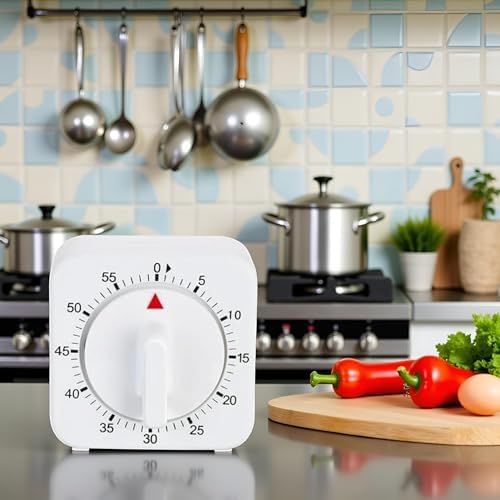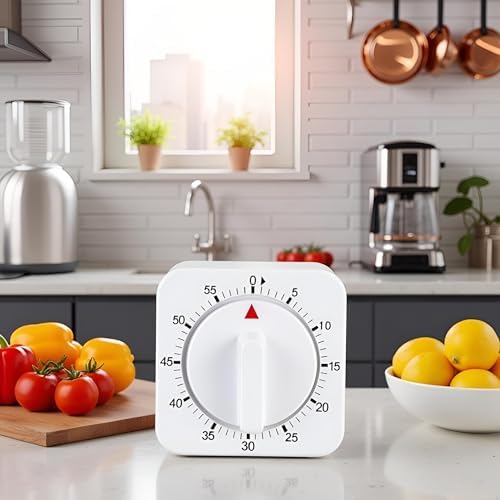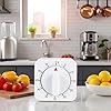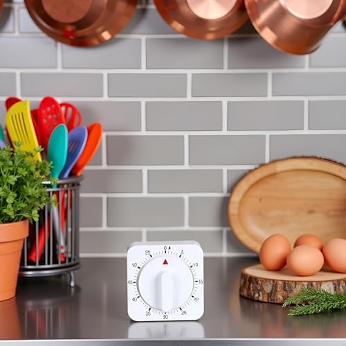 White Timer Clock Square 60-Minute Mechanical Kitchen Timer Wind up Visual Cooking Clock with Loud Alarm No Batteries Required Ideal for Kitchen Cooking Baking Timers