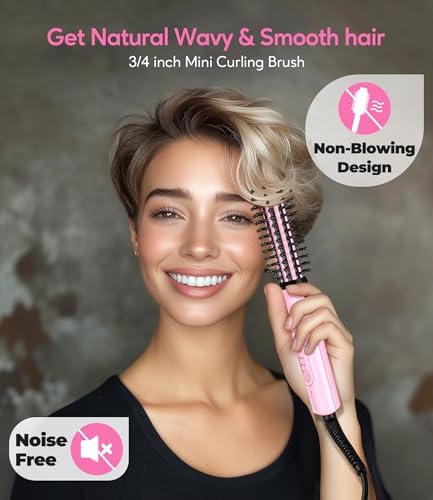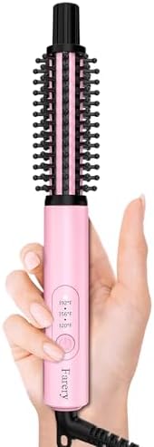 FARERY Mini Thermal Brush 3 Temperature Adjustable, 3/4 Inch Travel Curling Iron for Short Hair, Heated Round Brush for Touch ups and Small Curls, Travel Size Curling Wand, Dual Voltage, Pink