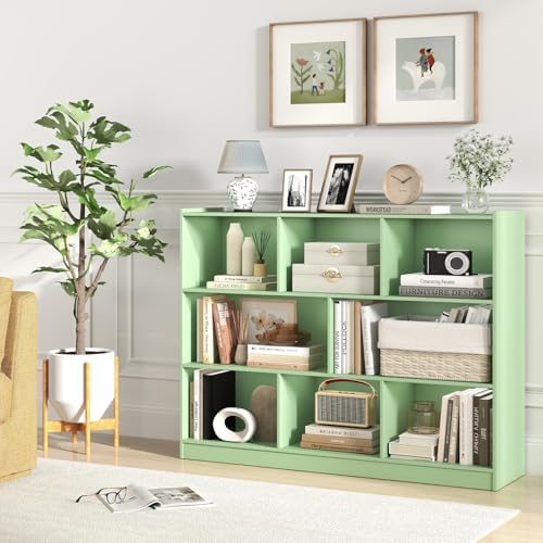 Tangkula 8-Cube Bookcase, Wood 3 Tier Open Storage Bookshelf, Modern Multipurpose Display Cabinet for Living Room, Study, Reading Nook, 48 x 12.5 x 36.5 Inch (Green)