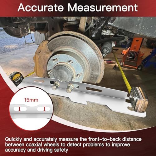 - Ease of Use: Simply remove the wheel,install the wheel alignment tool on the stud and use a tape measure to achieve perfect alignment