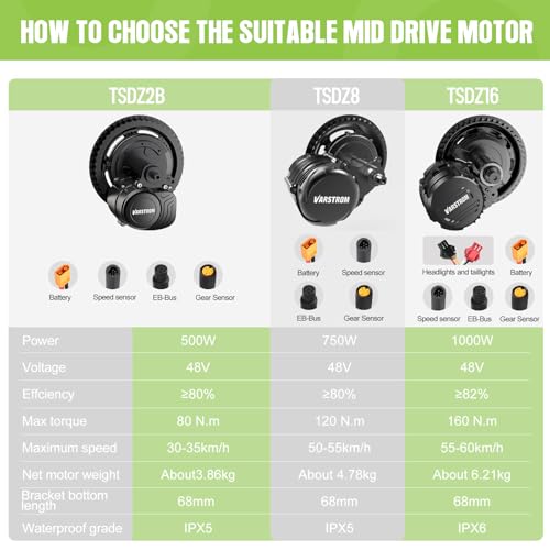- [Powerful Mid Drive Motor & Precision Torque Sensor] Unleash effortless rides with The Newest Varstrom's TSDZ16 mid drive motor, delivering up to Max160N.m(1000W) of torque for conquering hills, rough terrains, or long commutes. The advanced torque sensor instantly adapts to your pedaling force, offering natural "human-machine synergy" for smooth acceleration and energy efficiency