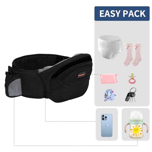 - 【Safety and Ergonomically Designed】 The thickened hip seat maintains the baby's M-shape during carrying, helping their skeletal development.Baby hip carrier is ergonomic and redistribute baby's weight evenly to ensure healthy hip development.