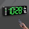 Digital Wall Clock, Digital Clock Large Display with Remote Control, Corded LED Alarm Clocks with Date, Week, Temp, Humidity, Auto DST, Countdown, for Living Room Bedroom Classroom Office (Green)