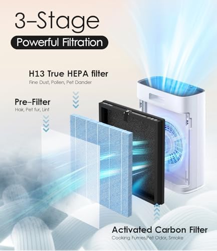 - Triple-Layer Filtration Technology: Multi-stage system combines a dense pre-filter, H13-grade HEPA layer, and activated carbon layer