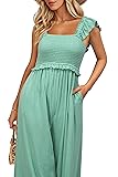 OUGES Jumpsuits for Women Casual Summer Overalls Ruffled Sleeve Strap Wide Leg Pant Rompers with Pockets