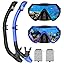 Snorkeling Gear for Adults, Adult Snorkel Mask Set Scuba Diving Dry-Top, Swimming Goggles w/Nose Cover, HD Tempered Glass Panoramic Anti-Leak Anti-Fog, Travel Snorkeling Packages Storage Bag, 2 Pack