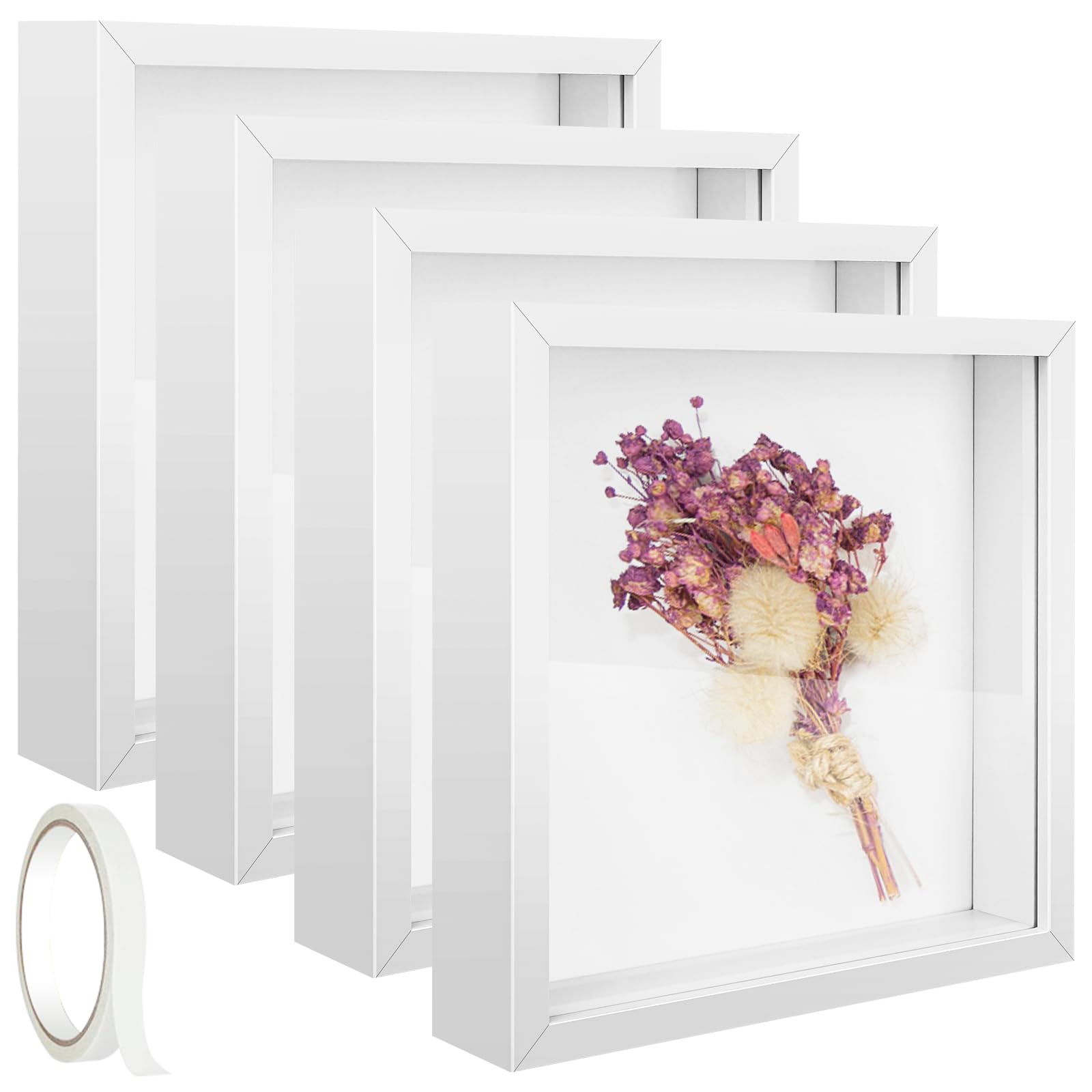 - Shadow Boxes Frame: You will receive 4 pack 5 x 5 inch shadow boxes display cases, the right number to meet your daily photo or plant collection needs, you can put the products you want to display in the white frame for display, more show your love of life. And A roll of double-sided adhesive tape also included,it makes you DIY crafts easily