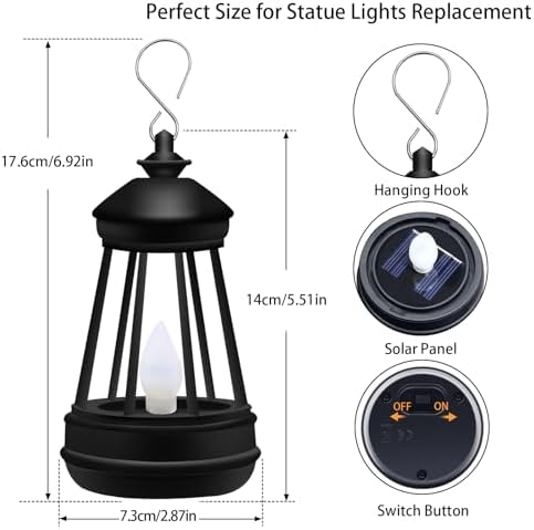 - MINI Lantern Replacement -- Size:H5.51”x W2.87”, Perfect hanging solar lantern to compatible with most outdoor garden statues or sculptures. Note: Mini size, please check the dimensions