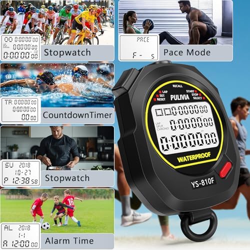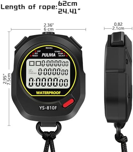 PULIVIA Waterproof Stopwatch with 10 Split/Lap, it is a professional stopwatch, fits for athletes, runners, coach, referee, adults, kids, and suits for various sports such as running, swimming and rugby game etc.The stopwatch has a good design, and you will feel comfortable and flexible in your hands. It comes with a 47in nylon lanyard (neck strap) which is convenient to carry for coaches and referees. It just can be Water resistant with dripping, splashing and sweat etc. So it cannot expose to the rain and completely into water, such as swimming, diving.It allows to record in both the lap and split time with the ability to store up to 10 memories for events and can measure up to 10 hours in 1/100 seconds. There are separate start-stop and reset buttons, it is durable, compact and easy to use. This is the perfect stopwatch for any Phys-Ed teacher or coach.The stopwatch also has these function: countdown timer, calendar clock and alarm, pace mode. They can meet different needs and manage time better in daily life. The pace mode makes your fitness, workout and exercise more accurate. The pace value can be adjusted from 5, 10, 15… to 320 counts per minute, and it will send “B” sound the value times per minute.Main Features:1. 1/100-Second Accuracy2. 10 Lap/Split time Memory storage3. Countdown Timer4. Date/Clock/Alarm5. Pace Mode(Fitness metronome)6. Large Three Row DisplayWhat's in The Package:1 X PULIVIA Digital Stopwatch1 X Black Lanyard1 X User Manual* Pay Attention *The screen protector is attached to the watch, and you can tear it off as your need.Please DONOT press any buttons underwater.Please contact us via amazon email, we offer 7days/24hrs Customer Service.