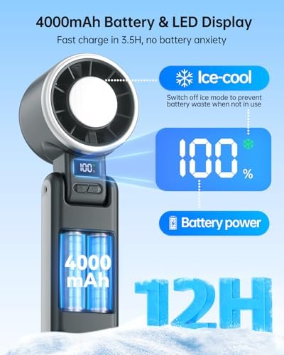 - One-Touch Ice Cooling Magic: Activate the ice cooling pad to feel immediate chill—dropping to 60°F in seconds! This handheld fan is perfect for instant relief on cheek, neck, back, or forehead when the heat overwhelming. Exclusive innovation for faster, deeper refreshment.