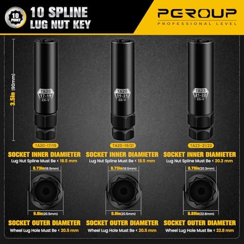 - LUG NUT KEY SET:Specification of 3PC spline key, the sizes are 10 spline lug nut key of TA20-17/19, TA20-19/21, and TA23-21/22.Having all common wheel lock keys like this saves your time from locking nuts and bolts, changing tires