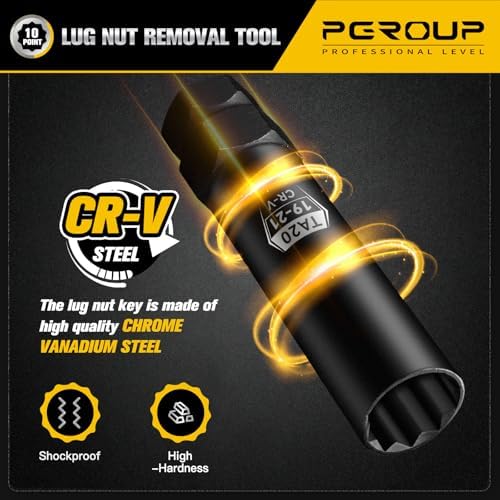 - HIGH DURABILITY WHEEL LOCK REMOVAL KIT: Each 10 spline lug nut socket in this set has a durable corrosion-resistant black phosphate coating. The lug nut key set is made of high quality chrome vanadium steel , which enhances corrosion resistance, is strong and reliable, ensures long-lasting performance