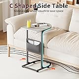 【C-Shaped End Table –Everyday Convenience Upgrade】This small side table features a C-shaped design that easily slides under couches, sofas, recliners, and beds, keeping your remotes, food, drinks, tablets, and daily essentials close by while saving valuable floor space. Standing 24.6" high, it fits most couches perfectly for comfortable use. The lightweight, flexible design makes it easy to move, making it ideal for small living rooms, bedrooms, dorms, and apartments 【Everything Right Beside You, Supported by a Durable Wooden Top】Enjoy daily convenience on a thick, eco-friendly wood tabletop designed for real life. The modern U-shaped surface safely holds phones, coffee, snacks, laptops, and devices while resisting scratches, water, and spills for easy, stress-free cleaning 【Strong, Wobble-Free Design for Everyday Use】Built with a quality metal frame and a durable tabletop, the C-shaped side table delivers reliable stability for daily use. Reinforced triangular bracing adds extra strength, supporting up to 22 lbs while confidently holding laptops, meal trays and drinks securely without wobbling. Adjustable feet help keep the table stable on uneven floors 【Power Within Reach – Side Table with Built-In Charging Station】Featuring 2 AC outlets, 2 USB ports and a 4.9 ft power cord, this C table keeps your devices powered right beside you. Charge your phones, e-readers, or laptops at the same time while relaxing—no need to get up or bend down to reach for distant wall outlets. Tip: Available in Classic or Charging Station versions to fit your needs 【Extra Storage Bag – No More Lost Remotes】The attached large fabric pocket neatly stores remotes, magazines, books, chargers, glasses and daily essentials. Everything stays visible, easy to grab, and off the tabletop—making your space feel cleaner and more organized 【15-Min Easy Assembly & Multi-Use Design】All accessories and tools are included with clear, step-by-step instructions for a smooth setup experience. Designed for everyday versatility, this small side table works as a couch end table, recliner table, laptop desk, TV dinner tray, snack table or bedside table. Its clean, modern look blends seamlessly with your home decor, adding both practical function and style to any space