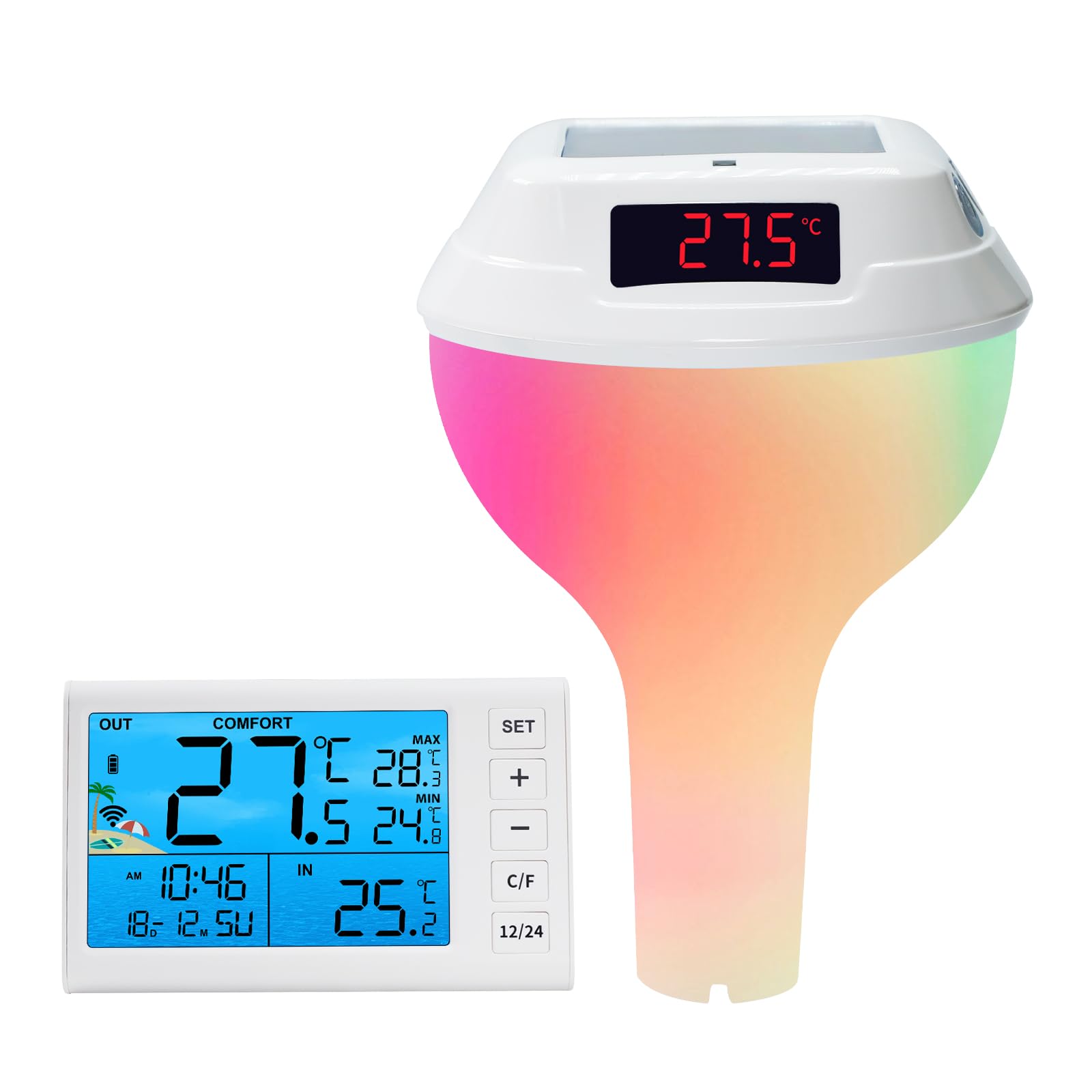 - ALERT SYSTEM & POWER-SAVING FEATURES – The wireless temp humidity monitor includes adjustable high/low alarm settings with buzzer & light alerts when limits are exceeded, plus auto/manual shutdown to conserve battery life.