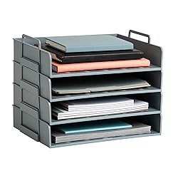 - Stackable Desktop Organizer Optimize your workspace with this four-tier, stackable desktop organizer. Specifically designed to accommodate letter-size papers, folders, and files, this organizer allows you to keep your important documents within easy reach. The four separate organizers can be stacked together or placed in different areas of your desk, offering flexible storage solutions. This organizer isn't just limited to paperwork - it can also hold other office essentials like pencils, scissors, and rulers, helping keep your work area tidy. Beyond the office, it can be utilized in the kitchen or other spaces at home, providing a practical storage solution wherever it's needed. The sturdy plastic design is built to withstand daily use, and its neutral color ensures it blends seamlessly into any environment. As a practical and stylish organizer, it makes a great gift for coworkers, graduates, new homeowners, or anyone looking to declutter their workspace.