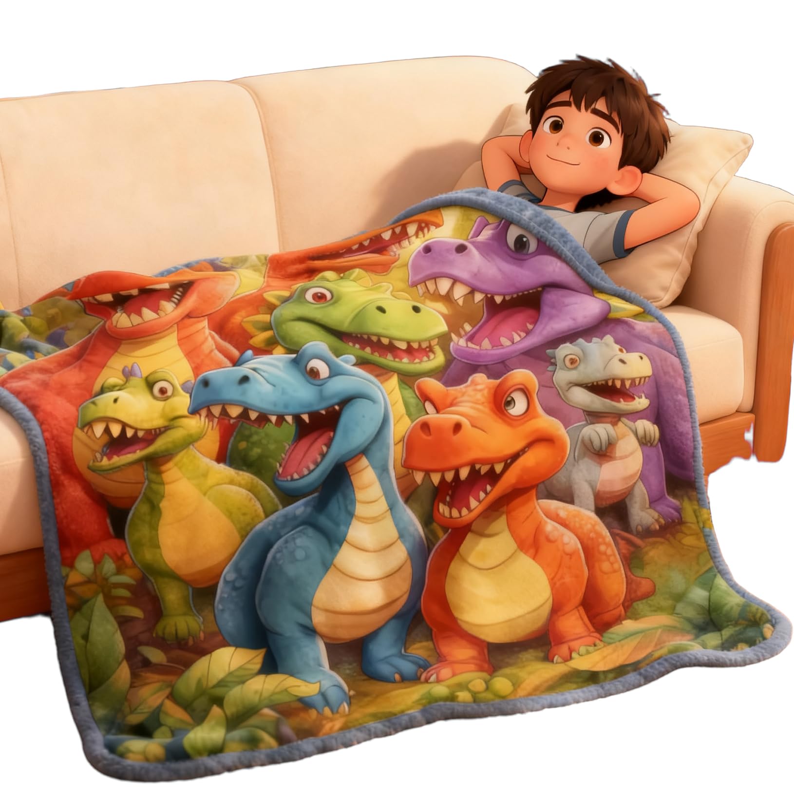- 【Material】 The dinosaur blanket for boys is made of microfiber fabric, super soft, high-quality and warm. Both sides are flannel fleece, but just printed on one side.
